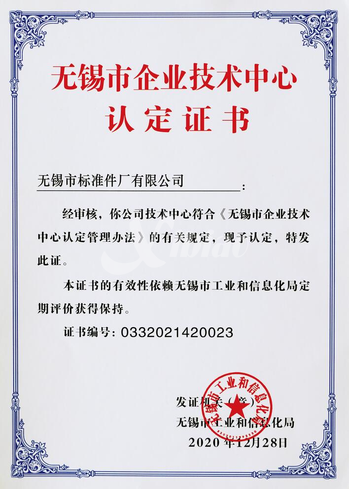 2020年12月公司獲評(píng)“無(wú)錫市企業(yè)技術(shù)中心”