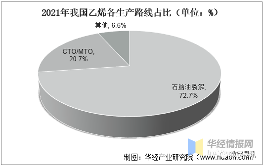 目前,我國乙烯生產路線主要以石腦油裂解為主,約占72.7%,CTO/MTO工藝占比約20.7%,其他生產路線占比6.6%。乙烷裂解制乙烯(含混合烷烴裂解)、重油催化熱裂解制烯烴、原油直接裂解制烯烴、乙醇脫水制乙烯等技術均已實現工業(yè)化,乙烯原料呈現出輕質化、多元化、一體化發(fā)展趨勢。