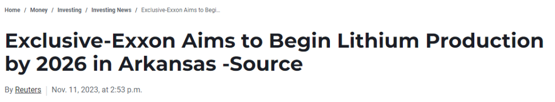 2023年5月,有消息指出,埃克森美孚公司已從GalvanicEnergy公司手中購買了位于美國阿肯色州南部Smackover儲層12萬英畝(約合485平方千米)土地的開采權(quán),計劃在這片土地上生產(chǎn)鋰。